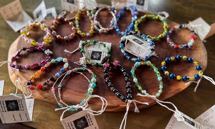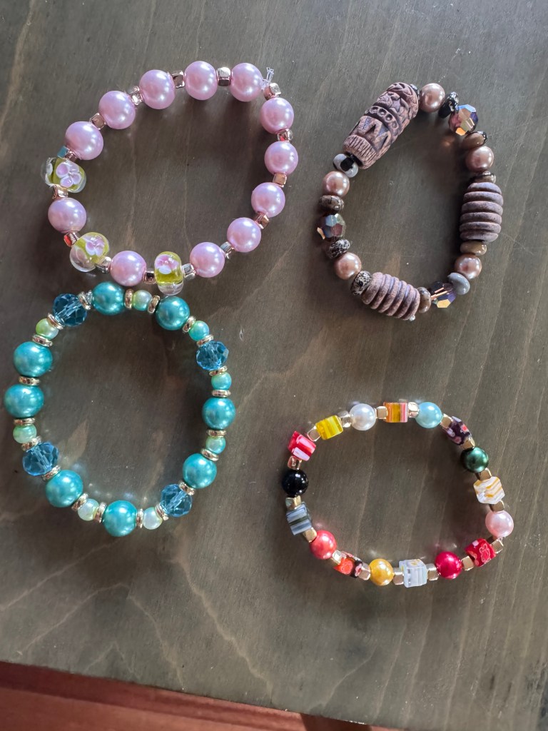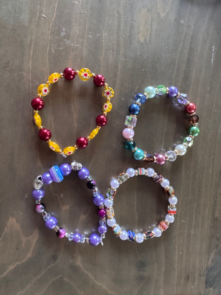 Each piece is crafted using dazzling lampwork glass, shimmering crystals, and pearls. Whether you’re stacking bracelets or making a statement, you’ll find something unique and full of sparkle.